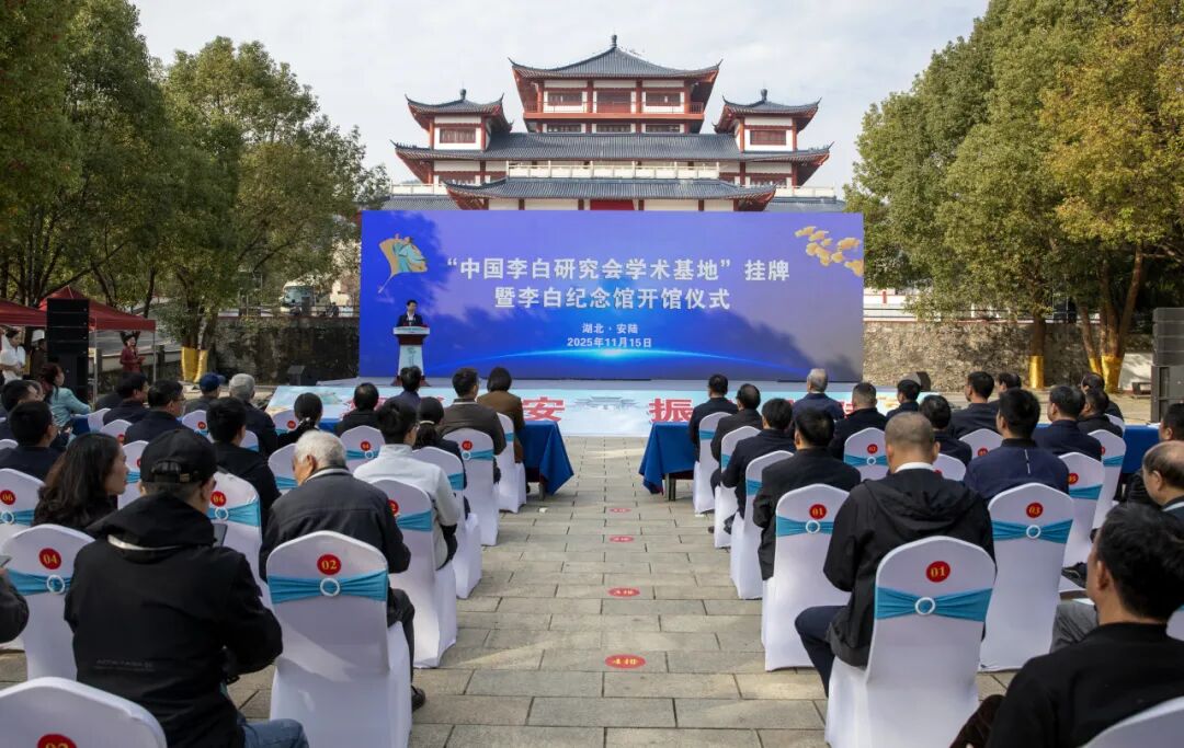 11月15日,“中国李白研究会学术基地”李白纪念馆挂牌暨揭牌仪式在湖北安陆白照山东坡李白纪念馆广场前隆重举行。