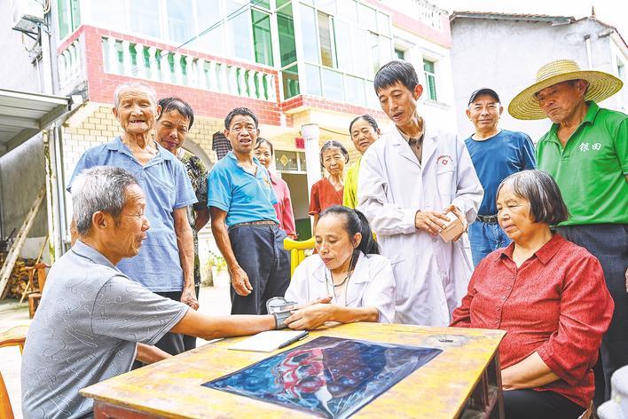 8月23日,在英山县杨柳湾镇高家坪村,乡村医生陈亚来到为居民免费健康检查。 (世界网 王江 摄)