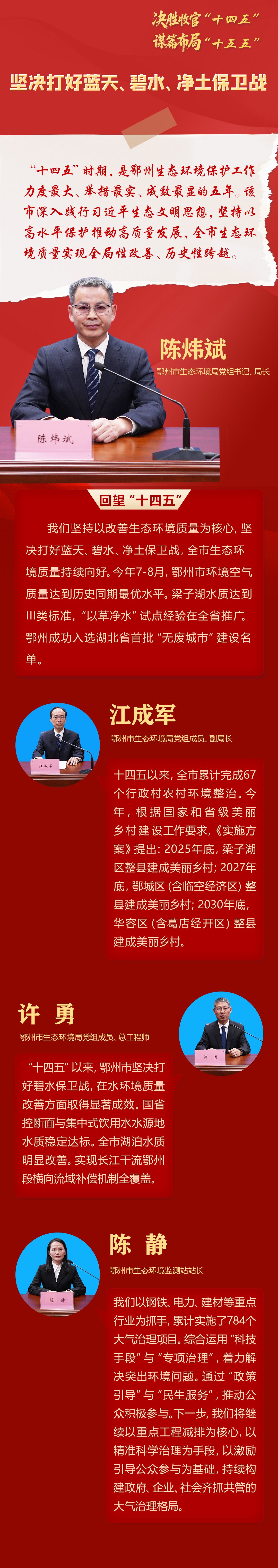 荆楚网(湖北日报)(记者金康刘路通讯员胡岩)11月13日,鄂州市召开主题为“一定完成‘十四五’规划和布局‘十五五’”系列新闻发布会。鄂州市生态环境局总结“十四五”期间全市生态环境工作取得的主要成就和重要进展,展望“十五五”期间绿色发展新规划。